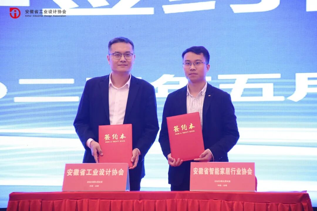 在本次大会上,协会法人代表王德才、徐成龙分别代表安徽省工业设计协会和安徽省智能家居行业协会签订战略合作协议。作为工业设计领域和智能家居领域全省范围内的行业协会,双方发展联系密切,产业资源优势互补。此次战略协议的签订,旨在进一步发挥设计引领作用,形成合作共赢的长效机制,共同促进智能家居产业的融合创新。